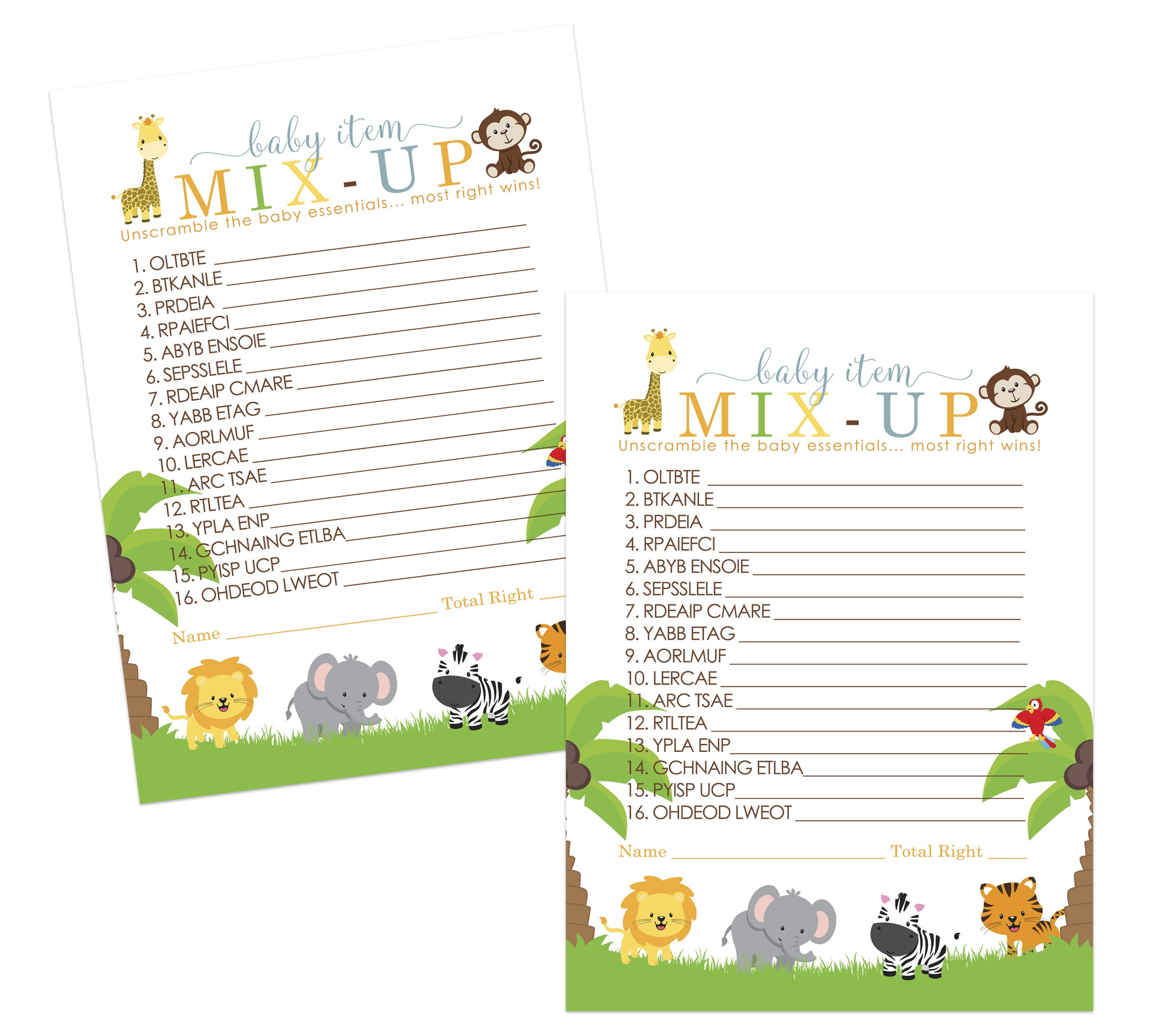Cute Jungle Word Scramble Game For Baby Shower 25 Pack Unscramble Activity Cards Guests Play Gender Reveal Wild Safari Themed 5x7 Size Set Printed Paper Clever Party Walmart Com