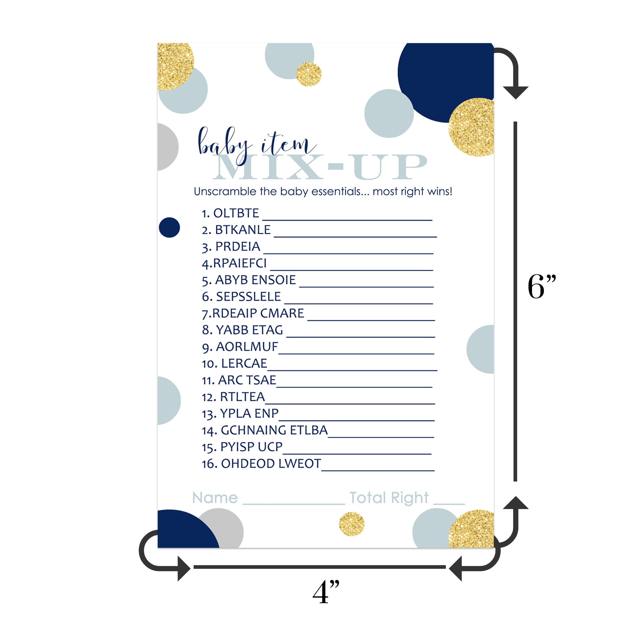 Navy And Gold Baby Shower Word Scramble Game Pack Of 25 Cards Boys Twinkle Little Star Royal Event Supply Prince Reveal Unscramble Activity For Guests 4 X 6 Size Paper Clever Party Walmart Com