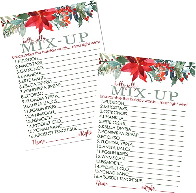 Poinsettia Christmas Word Scramble Game 25 Pack Unscramble Holiday Party Games Adults Kids Groups Coworkers Family Red And Green Themed Favors Supplies Printed 5x7 Size Set Walmart Com